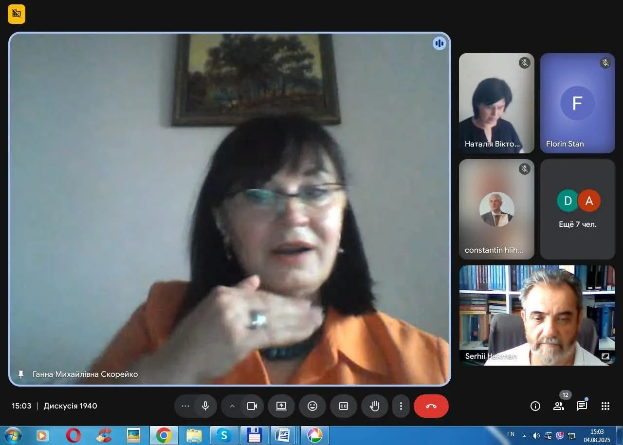 4 серпня 2025 р. в режимі онлайн відбулася українсько-румунська наукова дискусія «1940-й рік: буковинська і бессарабська проблема в геополітичному та геостратегічному просторі», організована Центром Буковинознавства Чернівецького національного університету ім. Юрія Федьковича та Благодійним фондом «Суспільні ресурси та ініціативи». Модераторами дискусії виступили директор Центру Буковинознавства ЧНУ, доцент кафедри історії України ЧНУ Ганна Скорейко, віце-президент Благодійний фонд «Суспільні ресурси та ініціативи», заступник директора Чернівецького регіонального центру підвищення кваліфікації Сергій Гакман та проректор університету «Штефан чел Маре» (м. Сучава, Румунія) професор Штефан Пуріч.