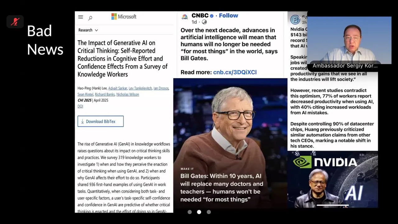 Онлайн-зустріч стала важливим майданчиком для обговорення того, як технологічні зміни формують нову архітектуру світової безпеки та які можливості відкриваються перед Україною у сфері штучного інтелекту й цифрової дипломатії.