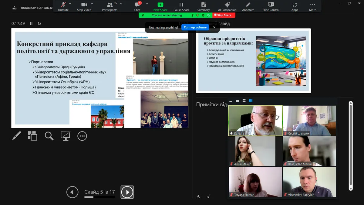 На другий день роботи літньої школи завідувач кафедри політології та державного управління проф. А. Круглашов разом із доцентом Сергієм Швидюком провели освітній бранч для її учасників на тему: «Досвід і ресурси розвитку міжнародної співпраці університетів». Вони поділились досвідом діяльності нашого університету у цій сфері в цілому і кафедри зокрема, проаналізували існуючі можливості для міжнародної співпраці українських ЗВО, виділили окремі проблеми в її налагодженні та запропонували можливі шляхи їх вирішення для успішного розвиту процесів інтернаціоналізації освітньої і наукової діяльності. В роботі Літньої школи взяли участь більшість викладачів кафедри. Всі її учасники, які виконали програму роботи школи отримують відповідні сертифікати про проходження стажування і підвищення кваліфікації.