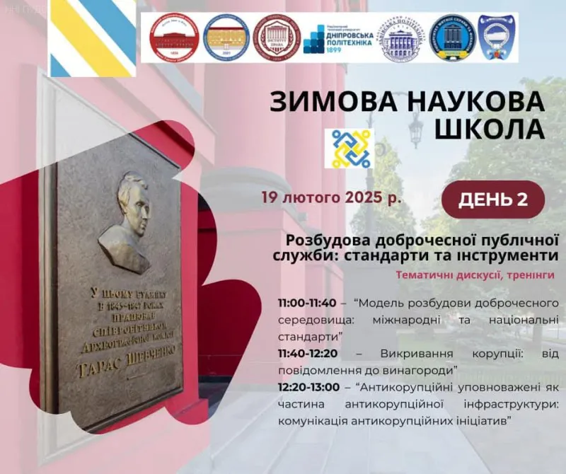 З 17 по 21 лютого 2025 року в ННІ публічного управління та державної служби Київського національного університету імені Тараса Шевченка тривала робота Зимової наукової школи «ЦИФРОВІ РІШЕННЯ В ЗАПОБІГАННІ КОРУПЦІЇ НА ПУБЛІЧНІЙ СЛУЖБІ».