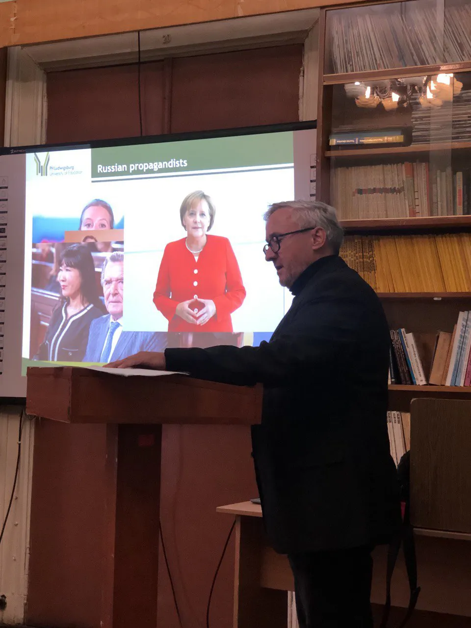 Питання, підняті науковцем під час лекції, стосувалися досвіду франко-пруської війни та сучасної російсько-української війни. І якщо у ХІХ сторіччі мова йшла про картини та повісті, то сьогодні ми більше ведемо мову про цифровий інструментарій російської пропаганди. Опісля обговорили роль та місце публічної дипломатії, політичну ситуацію в Німеччині, історичний контекст сучасної російської війни проти нашої держави.